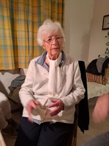 Wir besuchten die Jubilarin, die bis zu ihrem 80. Geburtstag beim Kirchenchor mitgesungen hat, an einem Montag Abend anstatt unserer Singprobe bei ihr zu Hause. Drei Lieder sangen wir für Sie, wurden von ihr und ihrer Familie bewirtet. Die Stunden vergingen bei lebhafter Unterhaltung.